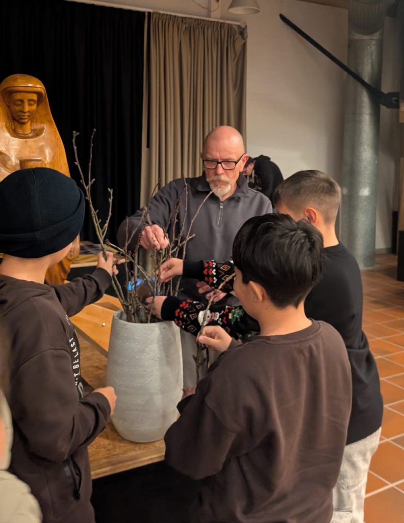 Zum Abschluss durfte auch ein alter Brauch nicht fehlen: Schüler*innen der Klasse 5.3 stellten Obstbaumzweige ins Wasser. Wenn diese zu Weihnachten blühen, so heißt es, bringt das Glück.